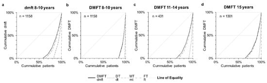 | dmft/DMFT of upper 20% | 232 | 4.4 (1.5) | 232 | 1.4 (1.2) | 83 | 3.7 (1.7) | 260 | 3.5 (1.8) |