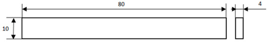 Shape and dimensions (mm) of the pieces used in the Flexural test (ASTM D6272).