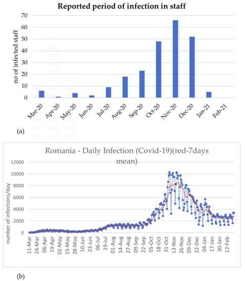 - Cazurile de infectare în rândul personalului medical au scăzut cu peste 87.7% după vaccinare. Available online: https://www.mediafax.ro/coronavirus/cazurile-de-infectare-in-randul-personalului-medical-au-scazut-cu-peste-87-7-dupa-vaccinare-19923921 (accessed on 23 March 2021).