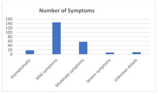 The majority of the infected dental practitioners presented mild (145 cases, 60.9%) to moderate symptoms (57, 2.9%) (Figure 7). Our calculations show 217 (91.1%) recovered cases and two deaths, while the rest of the patients were still in the recovery stage when the survey was answered.