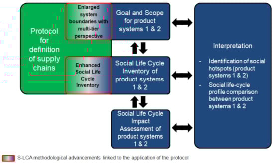 - Martín-Gamboa, M.; Dias, A.C.; Arroja, L.; Iribarren, D. A protocol for the definition of supply chains in product social life cycle assessment: Application to bioelectricity. Sustain. Energy Fuels 2020, 4, 5533–5542. [Google Scholar] [CrossRef]