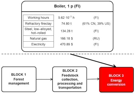 - Martín-Gamboa, M.; Dias, L.C.; Quinteiro, P.; Freire, F.; Arroja, L.; Dias, A.C. Multi-criteria and life cycle assessment of wood-based bioenergy alternatives for residential heating: A sustainability analysis. Energies 2019, 12, 4391. [Google Scholar] [CrossRef]