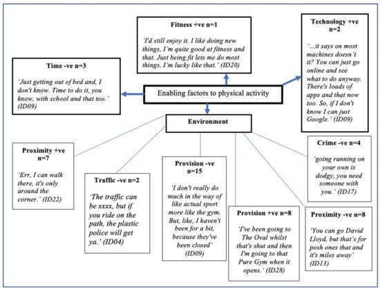 “I like, I don’t really do much in the way of like actual sport more like the gym. But, like, I haven’t been for a bit, because they’ve (local authority leisure centre) been closed.” (ID08) and “I don’t do it outside school. Nowhere does it, all mostly football.” (ID25) and ‘Yeah, council ones get ruined.” (ID21).