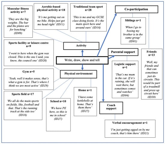 - Noonan, R.J.; Boddy, L.M.; Fairclough, S.J.; Knowles, Z.R. Write, draw, show, and tell: A child-centred dual methodology to explore perceptions of out-of-school physical activity. BMC Public Health 2016, 16, 326. [Google Scholar] [CrossRef]