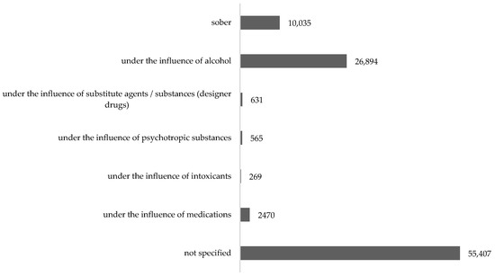 The statistics for 2017–2019 noted the presence of new items describing the sobriety of victims, taking into account the impact of new psychoactive substances such as narcotic drugs and drugs on this state (Table 3).
