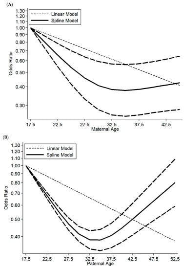 The fertility trends have changed in some countries. On the one hand, the average age of parents at childbirth has increased in high–income countries, and the proportion of women delivering in their thirties and forties has risen correspondingly [,,]. On the other hand, adolescent childbearing still is a public health problem, and the rate of adolescent marriage and childbearing in the past decade rebounded []. Extensive evidence suggests that parental age at delivery is associated with outcomes in the offspring []. Advanced parental age may lead to a mental disorder such as autism spectrum disorder and schizophrenia [,]. Similarly, very young parents’ age increases rates of neurobehavioral outcomes in offspring, including behavioral disorders and intellectual disability [].