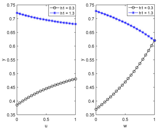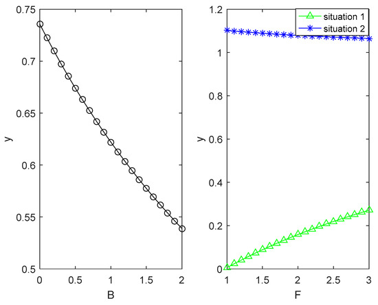 When the environmental protection investment performance of local governments is relatively low (), enhancing the positive and negative externality coefficients of external government investment behaviour is conducive to increasing the probability that the local government will choose strict supervision. When the environmental protection investment performance of local governments is relatively large (), reducing the positive and negative externality coefficients of external government investment behaviour is conducive to increasing the probability that the local government will choose strict supervision. In addition, compared to the positive externality coefficient, the negative externality coefficient has a greater impact on the probability of the local government choosing strict supervision.