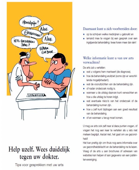 Jansen, C.J.M.; Koops van ’t Jagt, R.; Reijneveld, S.A.; van Leeuwen, E.; de Winter, A.F.; Hoeks, J.C.J. Improving Health Literacy Responsiveness: A Randomized Study on the Uptake of Brochures on Doctor-Patient Communication in Primary Health Care Waiting Rooms. Int. J. Environ. Res. Public Health 2021, 18, 5025. https://doi.org/10.3390/ijerph18095025
