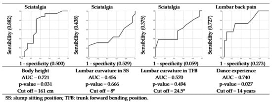 Chicago/Turabian StyleCejudo, Antonio, Sebastián Gómez-Lozano, Pilar Sainz de Baranda, Alfonso Vargas-Macías, and Fernando Santonja-Medina. 2021. "Sagittal Integral Morphotype of Female Classical Ballet Dancers and Predictors of Sciatica and Low Back Pain" International Journal of Environmental Research and Public Health 18, no. 9: 5039. https://doi.org/10.3390/ijerph18095039