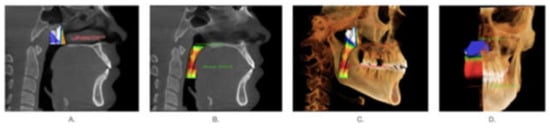 - Di Carlo, G.; Gurani, S.F.; Pinholt, E.M.; Cattaneo, P.M. A new simple three-dimensional method to characterize upper airway in orthognathic surgery patient. Dento-Maxillo-Facial Radiol. 2017, 46, 20170042. [Google Scholar] [CrossRef]