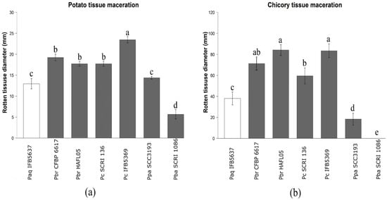- Gardan, L.; Gouy, C.; Christen, R.; Samson, R. Elevation of three subspecies of Pectobacterium carotovorum to species level: Pectobacterium atrosepticum sp. nov., Pectobacterium betavasculorum sp. nov. and Pectobacterium wasabiae sp. nov. Int. J. Syst. Evol. Microbiol. 2003, 53, 381–391. [Google Scholar] [CrossRef]