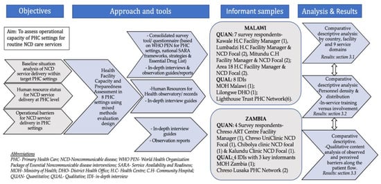 Shiroya, V.; Shawa, N.; Matanje, B.; Haloka, J.; Safary, E.; Nkhweliwa, C.; Mueller, O.; Phiri, S.; Neuhann, F.; Deckert, A. Reorienting Primary Health Care Services for Non-Communicable Diseases: A Comparative Preparedness Assessment of Two Healthcare Networks in Malawi and Zambia. Int. J. Environ. Res. Public Health 2021, 18, 5044. https://doi.org/10.3390/ijerph18095044