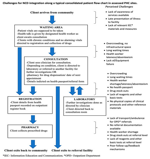- Temu, F.; Leonhardt, M.; Carter, J.; Thiam, S. Integration of non-communicable diseases in health care: Tackling the double burden of disease in African settings. Pan Afr. Med. J. 2014, 18, 202. [Google Scholar] [CrossRef]