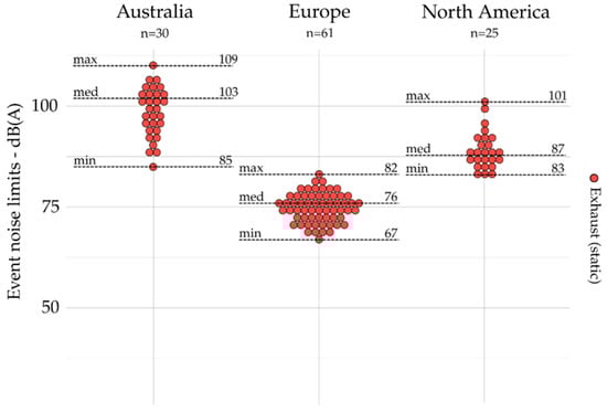 | EU [23,24] | Engine noise (dynamic) and Exhaust noise (static) | L |