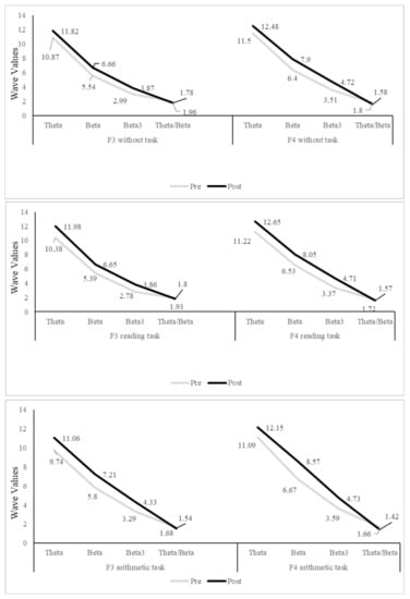 - Kerson, C.; deBeus, R.; Lightstone, H.; Arnold, L.E.; Barterian, J.; Pan, X.; Monastra, V.J. EEG theta/beta ratio calculations differ between various EEG neurofeedback and assessment software packages: Clinical interpretation. Clin. EEG Neurosci. 2020, 51, 114–120. [Google Scholar] [CrossRef] [PubMed]