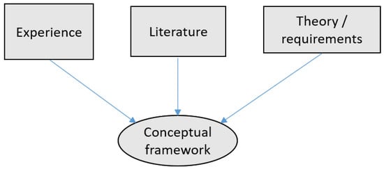 This study aims at investigating, if there are any existing models for drone noise modelling proposed in the literature. If no such models exist, we will propose a conceptual framework for a drone noise modelling service in the U-space architecture. In order to achieve this objective, we followed a research methodology proposed in [51] for the development of a conceptual framework, which can be seen in Figure 1. To propose a conceptual framework, three sources need to be considered: Experience, literature and theory/requirements. The sources for a conceptual framework are considered as principal elements which can be used as the basis for developing any framework.