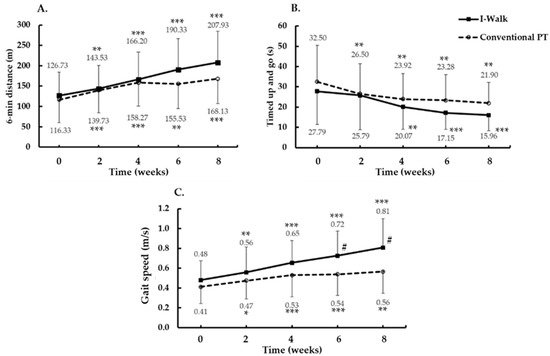 - Pansuksawat, N.; Tantilipikorn, P.; Kooncumchoo, P.; Rungroungdouyboon, B. Effects of I-Walk training on gait performances in patients with chronic stroke. Vajira Med. J. 2020, 64, 243–254. [Google Scholar]