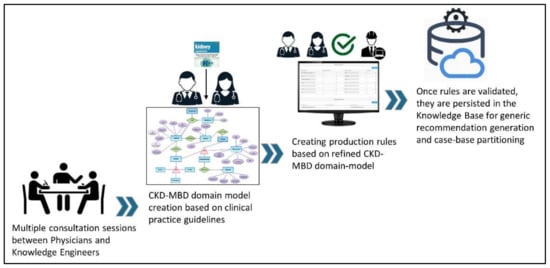 In order to address the aforementioned points, the study is designed in a collaborative manner in which both domain experts (i.e., clinicians) and knowledge engineers work in tandem to realize the proposed CDSS. The domain experts provide the relevant domain knowledge, which is in turn modeled and enhanced by knowledge engineers. Most of the CDSSs in the domain of CKD are based on black-box machine learning models [