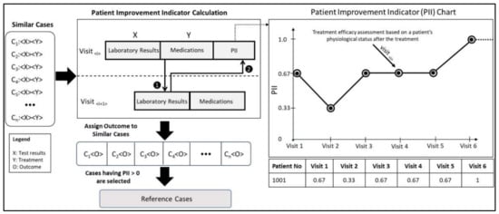 Case selection based on reference cases identified through a patient improvement indicator (PII);