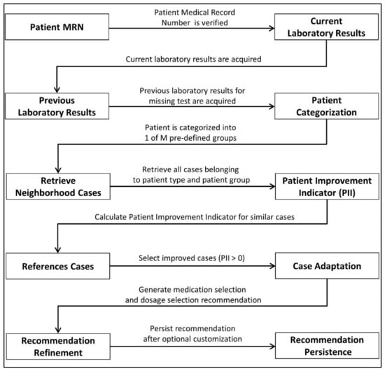 15] in ESRD patients, their optimal control is of paramount importance. One of the major barriers to correct laboratory abnormalities is that the medication prescribed to control one parameter may cause other parameters to fall out of the target range. To help clinicians prescribe the best set of medications, we developed a computerized decision support system which provides recommendations mostly regarding medication adjustment based on domain knowledge and past patient cases. A generic process flow for the CKD–MBD evaluation and treatment is presented in