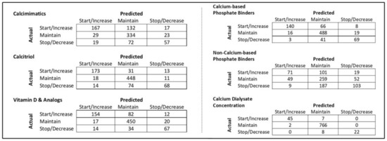 | Calcimimetics | [Start or Increase Cinacalcet], [Decrease Cinacalcet], [Stop or Decrease Cinacalcet], [As it is] |