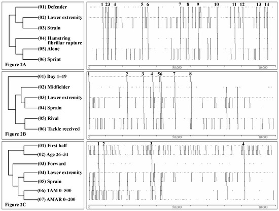 | ((defender (lower extremity strain)) (hamstring fibrillar rupture (alone sprint))) | 14 | 6 |