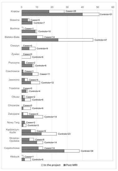 A total of 370 children have undergone psychological evaluation, of whom 236 have also completed the MRI scan. Figure 3 depicts the number of cases and controls tested in each town at the end of August 2021.