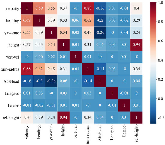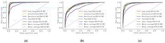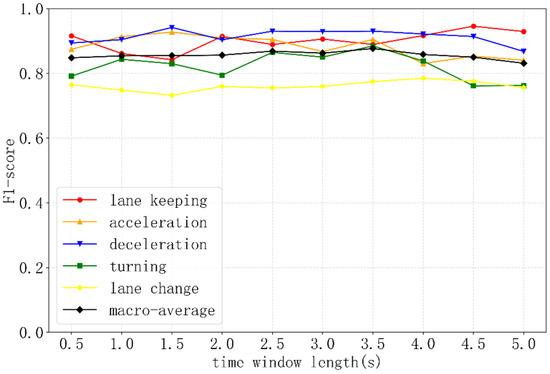 22] used the UAH-DriveSet public dataset, selected seven features, namely, velocity, tri-axis accelerations, and tri-axis angular velocities, and employed a convolutional neural network (CNN) to identify six kinds of driving behavior: lane keeping, acceleration, braking, turning, left lane change, and right lane change, with an average F1 of 0.87. Similarly, Xie et al. [