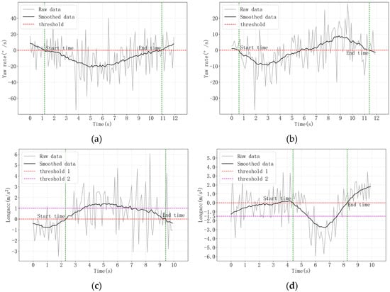 In addition, to reduce the noise and improve the stability, the vehicle kinematic data were smoothed using a Savitzky–Golay filter, and the specific steps and parameters were taken from a study by Brombacher et al. [