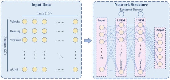 1] used the KNN-DTW algorithm to identify two kinds of driving behaviors: left lane change and right lane change, with an identification accuracy of 81.97% and 71.77%, respectively. Considering the fact that it was a simple binary classification problem, such accuracies were relatively low, which can be attributed to the weakness of the algorithm itself. A more efficient method is to use deep learning algorithms to improve the nonlinearity and generalization ability [