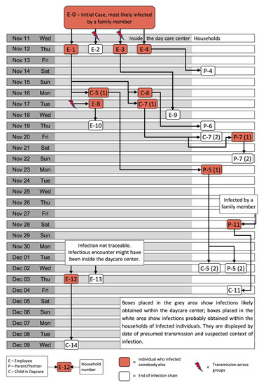 Infection chain of a COVID-19 outbreak in a kindergarten in November/December 2020 in Berlin, Germany.