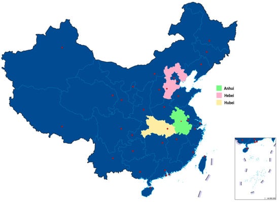 A map indicating the location of Anhui, Hebei, and Hubei in China. This map is provided by Shanghai Baotu Internet Techonology Company with an authorization [].