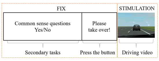 In SAE Level 3 autonomous vehicles, before being asked to take over, drivers are likely to be engaged in secondary tasks unrelated to driving, such as playing games, watching movies, or attending video conferences. Drivers’ attention that should have been focused on driving is distracted by secondary tasks, which may lead to poor takeover behavior. Merat et al. [3] suggested it could take approximately 40 s for drivers to resume an adequate and stable lateral control of driving when they switch from autonomous to manual driving. Similarly, Pampel et al. [4] found a diminishing difference in mean speed, measured using 5-s time bins, after approximately 20 s of vehicle control take-over and standard deviation of lane position did not stabilize for the first 10 s during a non-distractive short take-over driving scenario. Vogelpohl et al. [5] argued that drivers might require additional time and assistance in order to reach a level of situational awareness necessary to resume manual driving. Many other literatures have studied the ability of human drivers to take over control from the automated vehicle for various types of traffic situations [6,7,8,9,10]. Several bold simulator studies have found that in urgent conditions, mean take-over time of drivers is even as low as about 1 s [11,12,13]. In a meta-analysis of 129 experimental studies, Zhang et al. [14] examined the determinants of take-over time and found that take-over times depend on, among other factors, the urgency of the situation and the type of take-over request. Based on the above research, the speed difference between the front and the lead vehicles and the takeover monitoring request are set as the experimental variables.