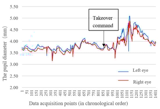 Change of pupil diameter of both eyes during takeover process in the most-critical scenario without MR.