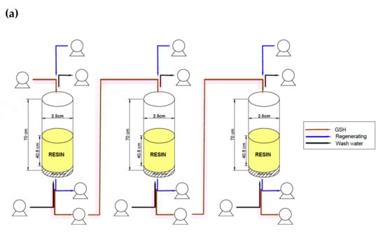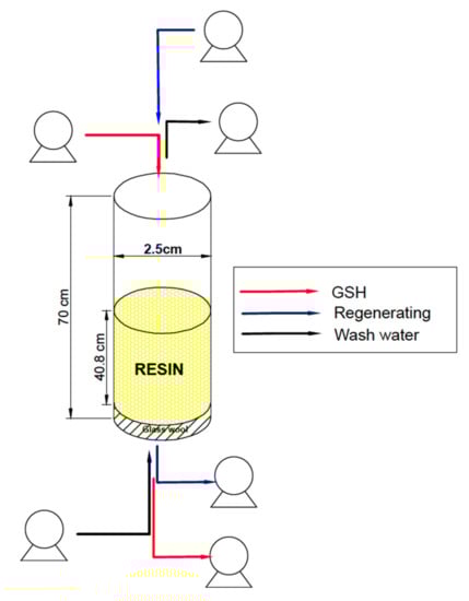 In order to make the cadmium adsorption representative of the industrial process of GSH production, a reference flowrate of 2.8 m3 h−1 was considered for the column design on the lab scale. The following variables were considered for the column design: linear velocity, space velocity, and expansion of the resin pack.