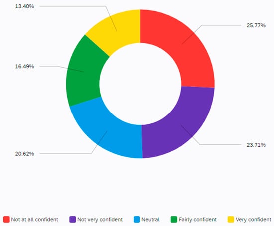 Confidence using the internet is generally relatively poor amongst participants, with approximately half (49%) stating that they had low/very low confidence. Only 29% expressed high or very high competence (Figure 2). However, among the participants, internet confidence score and age were negatively correlated, r(97) = −0.178, p = 0.040. Older age was found to be a significant predictor of less confidence. Furthermore, male participants (n = 71) were more confident (M = 2.94, SD = 1.17) than female (n − 26) participants (M = 1.94, SD = 0.98), and this was found to be statistically significant, t(95) = 3.274, p = 0.001.
