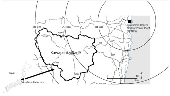 In March 2011, the Tokyo Electric Power Company’s Fukushima Daiichi Nuclear Power Plant (FDNPP) accident occurred as a result of the Great East Japan Earthquake and the massive tsunami of over 40 m, which is the largest recorded since observations began (magnitude 9.0). This complex disaster caused extreme direct damage occurred due to destruction of public equipment, as well as disruption of life and business activities, interruption of lifelines, and severance of supply chains [1,2]. More serious was the release of various radionuclides exceeding standard values into the environment from the FDNPP. Corresponding to the nuclear accident, the government ordered residents in a 3 km radius around the FDNPP to evacuate on 11 March 2011. As the seriousness of the accident became apparent, the areas of evacuation orders were gradually expanded. On 22 April 2011, the government of Japan decided to rearrange the areas to which evacuation orders have been issued into 3 areas, depending on the annual integrated doses and the distance from FDNPP, as follows: evacuation order zone (warning zone), planning evacuation zone, and, emergency evacuation preparation zone (evacuation instruction canceled on 30 September 2011). These consequences necessitated the long-term evacuation of approximately 164,825 people from their hometown: 102,827 people in the area of Fukushima and 62,038 people outside Fukushima [3]. Moreover, evacuees consequently suffered chronic mental and physical health due to the accident, manifesting as depression and increased levels of cardiovascular and lifestyle-related diseases [4,5,6].