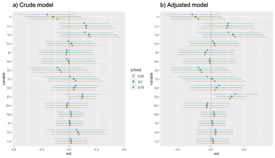 | REEs a | Univariate Model | Adjusted Model b | ||