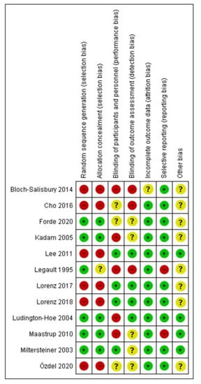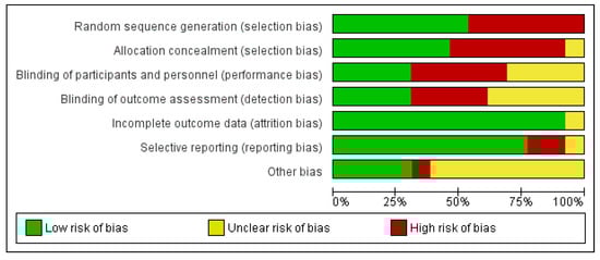 - Higgins, J.P.T.; Altman, D.G.; Gøtzsche, P.C.; Jüni, P.; Moher, D.; Oxman, A.D.; Savović, J.; Schulz, K.F.; Weeks, L.; Sterne, J.A.C.; et al. The Cochrane Collaboration’s tool for assessing risk of bias in randomised trials. BMJ 2011, 343, d5928. [Google Scholar] [CrossRef] [PubMed]