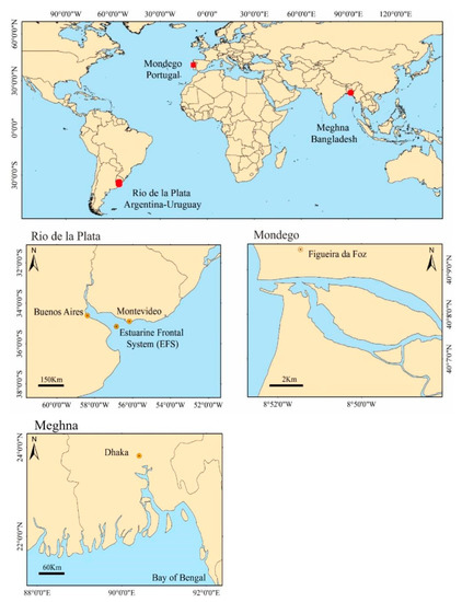 The descriptions of the Meghna (Ganges delta in Bangladesh), Mondego (Central Portugal) and RdlP (Argentina-Uruguay) River estuaries are summarised in Table 1.