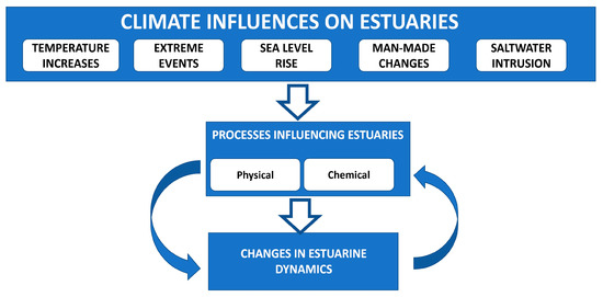11. Gillanders, B.; Elsdon, T.; Halliday, I.; Jenkins, J.; Robins, J.; Valesini, F. Potential effects of climate change on Australian estuaries and fish utilising estuaries: A review. Mar. Freshw. Res. 2011, 62, 1115–1131. [Google Scholar] [CrossRef] [Green Version]