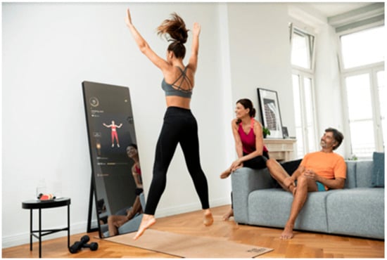 Although there are virtual training courses, the experience is not conventional VR or AR; instead, one could say that the ecosystem creates an MR experience, as the user merges with the community of other cyclists, where the ecosystem of courses, coaches, and fellow competitors represents the “virtual” world. This combination effectively increases the motivation to achieve top performance. Accordingly, in 2020, Peloton reported sales of $1.8 billion, doubling the sales within one year, which is primarily attributable to the pandemic [12].