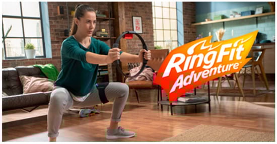 - Seils, L. Fit durch Gaming? Ring Fit Adventure für die Nintendo Switch im Test. Fit for Fun (FOCUS Online Group GmbH). November 2020. Available online: https://www.fitforfun.de/tests/produkttest/fit-durch-gaming-das-spiel-ring-fit-adventure-fuer-nintendo-switch-458043.html (accessed on 28 March 2021).