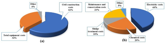 One-stage SNDA process cost analysis; (a) distribution of total project investment; (b) distribution of operating costs.
