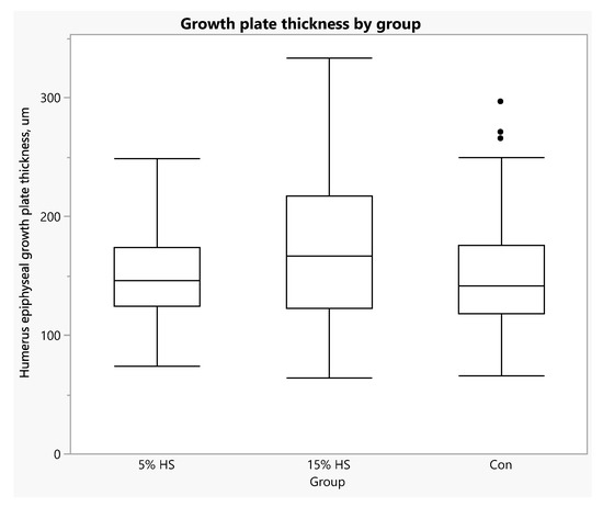 3.3. Humerus Bone Osteoblast Cell Density, Mineralization and Growth Plate Thickness