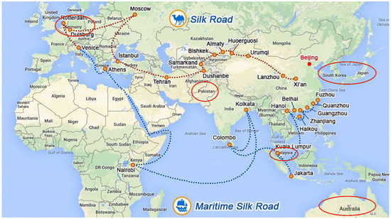 The Belt and Road Initiative (BRI), proposed by Chinese President Xi Jinping in 2013, is an international initiative with vital implications for the economy, society, culture, and the environment [1]. Consisting of the “Silk Road Economic Belt” and the “21st Century Maritime Silk Road”, the BRI was inherited and developed from the ancient Silk Road that played an essential role in connecting the West with the East on various socio-economic levels with its spirit of peace, friendship, inclusiveness, openness, mutual benefit, and mutual learning for many centuries [2]. As China’s most ambitious long-term regional infrastructure project, the BRI primarily intends to provide unparalleled international economic cooperation opportunities and strengthen the trade and connectivity between Asia, Africa, and Europe with terrestrial and maritime routes [3]. To date, this initiative has officially involved 147 countries and 32 international organizations [4], with an estimated investment of USD 8 trillion by 2049. The BRI-related countries and regions constitute nearly 70% of the world’s population and account for more than 50% of global output [5]. It is projected that the population of Belt and Road countries (including China) will reach approximately 5.4 billion by 2030 [6]. It is claimed that the BRI will serve as a positive move toward cooperation among the Belt and Road regions, stimulating economic momentum in its member countries as well as other countries along the routes.