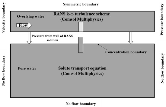 where k is the sediment permeability, μ is the fluid viscosity, and P is the pressure. The pressure at the sediment–water interface is determined by the surface water mathematical model.