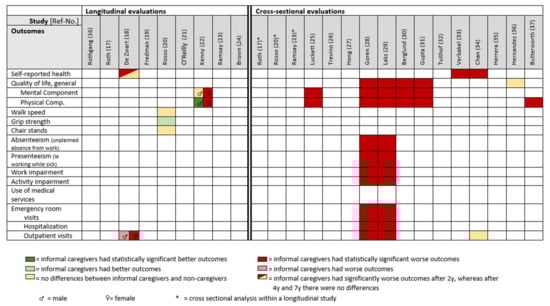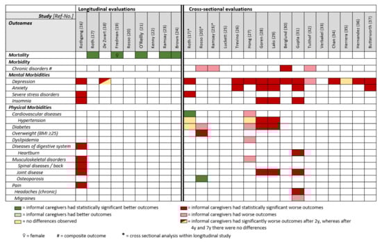APA StyleJanson, P., Willeke, K., Zaibert, L., Budnick, A., Berghöfer, A., Kittel-Schneider, S., Heuschmann, P. U., Zapf, A., Wildner, M., Stupp, C., & Keil, T. (2022). Mortality, Morbidity and Health-Related Outcomes in Informal Caregivers Compared to Non-Caregivers: A Systematic Review. International Journal of Environmental Research and Public Health, 19(10), 5864. https://doi.org/10.3390/ijerph19105864