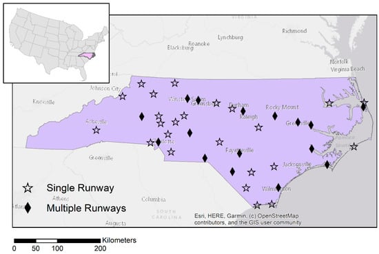 The Federal Aviation Administration (FAA) provided data on location and aviation traffic for North Carolina airports from a variety of sources (