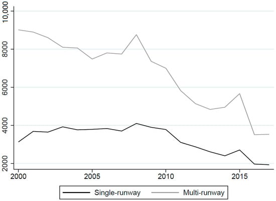 7]. Twenty-four of the forty airports included in the analysis had a single runway, and 16 had between two and four runways (